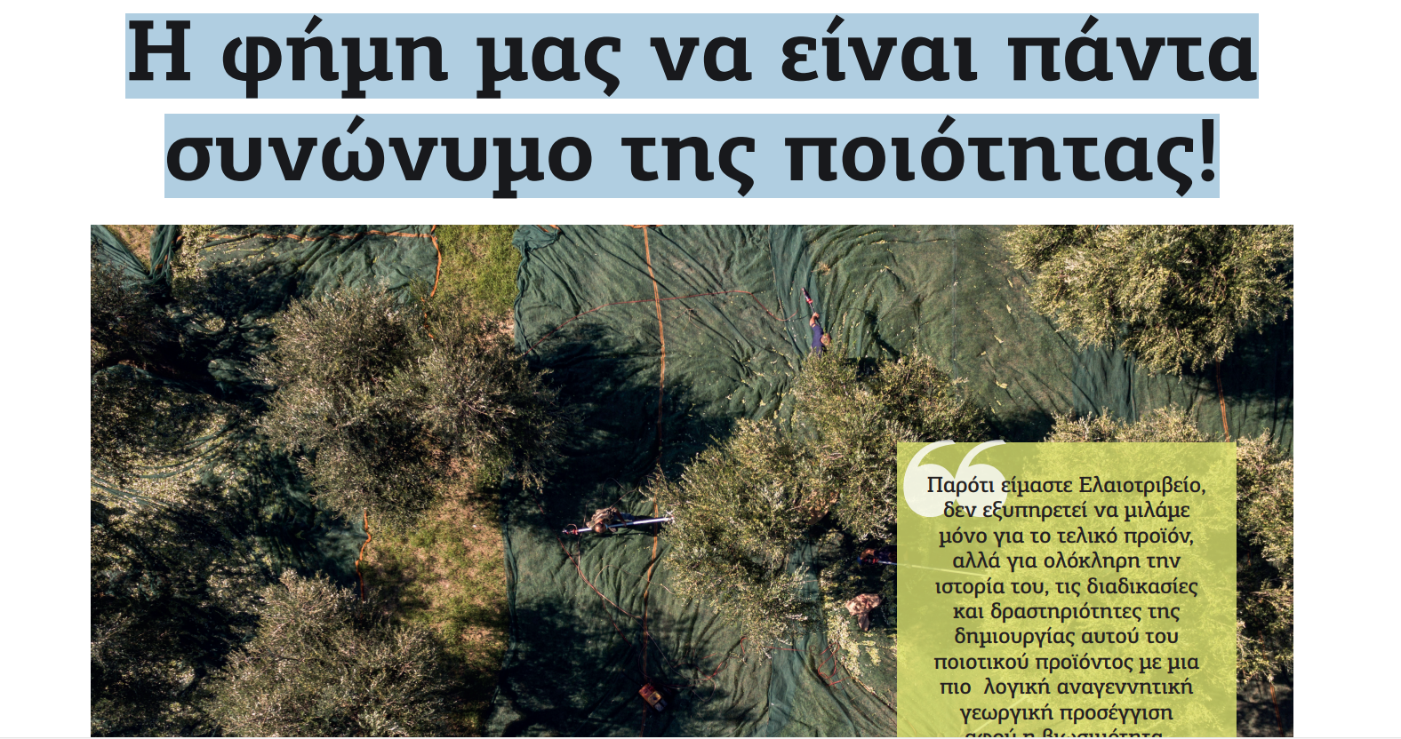 Η φήμη μας να είναι πάντα συνώνυμο της ποιότητας!